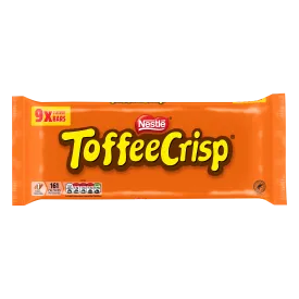 Toffee Crisp is a layer of soft caramel and crispy cereal pieces encased in a smooth milk chocolate flavour coating.